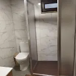 The holiday home includes a bathroom with a separate toilet and a shower. Towels are also at your disposal.